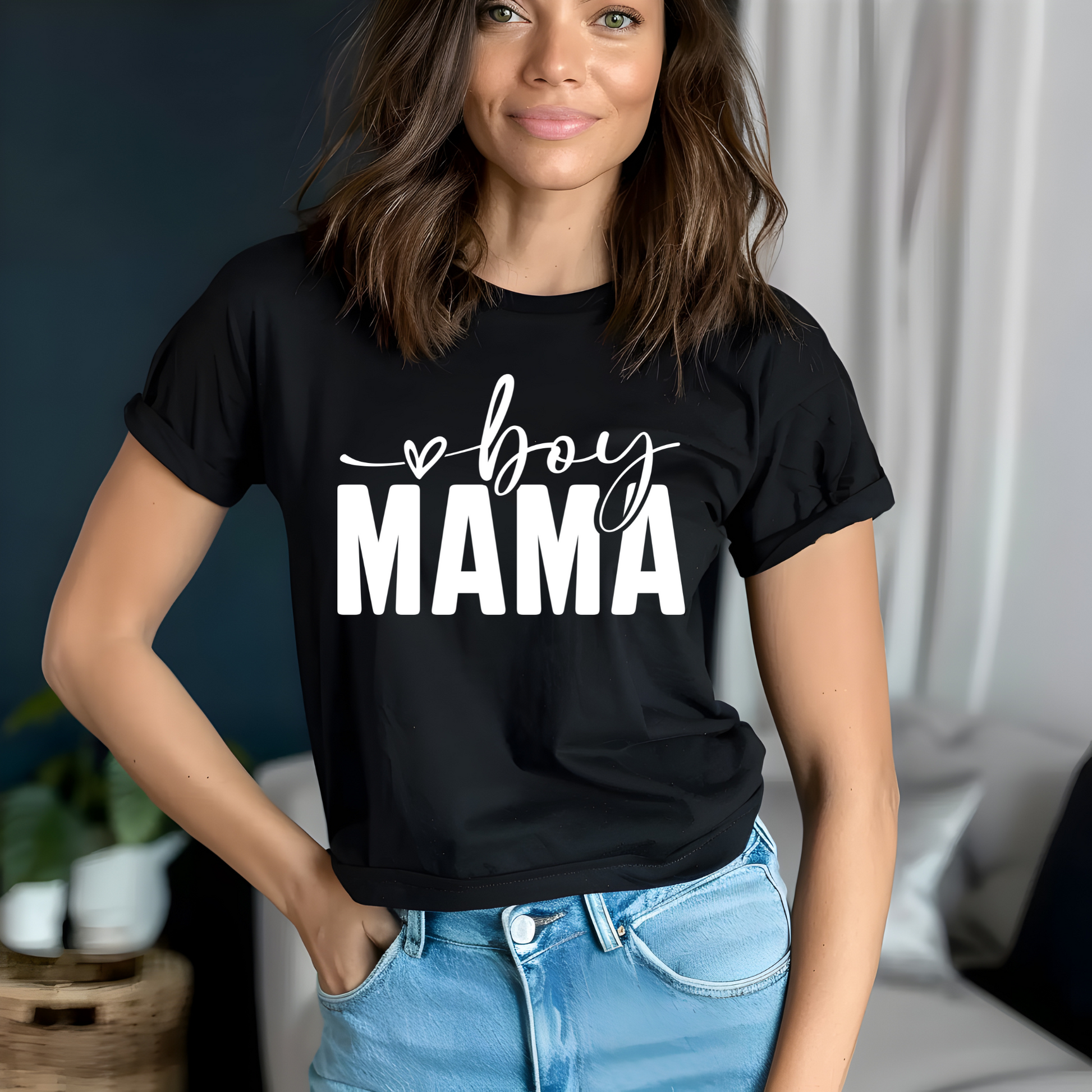 Boy Mama White Lettering T Shirt